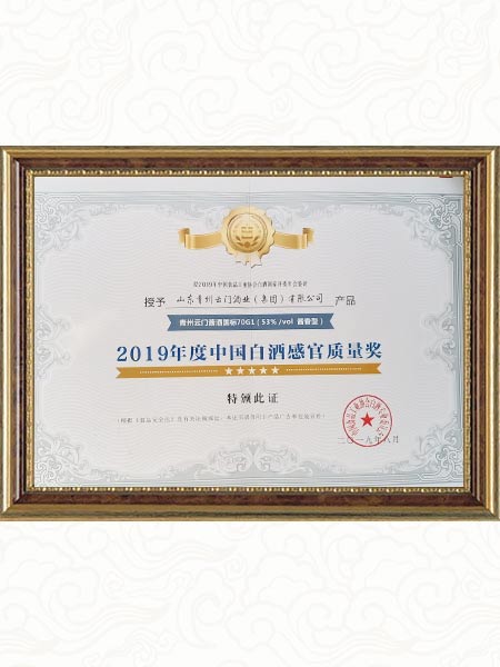 2019.8 国标G1 获2019年度中国白酒感官质量金奖