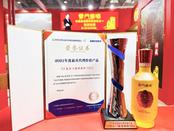 云门酱酒国标70G1也凭借品质在众多酱酒中脱颖而出,荣获“2021年度zui具代理价值产品”。