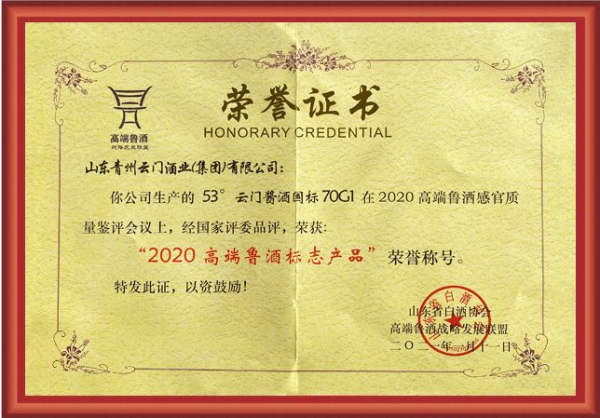 在本届峰会举行的前一天,新晋的鲁酒行业国家评委们对60多家鲁酒企业的产品进行了感官质量鉴评。经过专家评委的认真鉴评,共评选出了48种产品获奖,分别评出了“2020鲁酒产品奖”和“2020鲁酒标志产品奖”。其中,云门酱酒·国标G1荣获鲁酒产品的高荣誉——“2020鲁酒标志产品”。