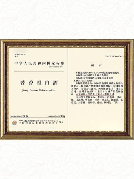 2009年参与制定《国家酱香型白酒标准》